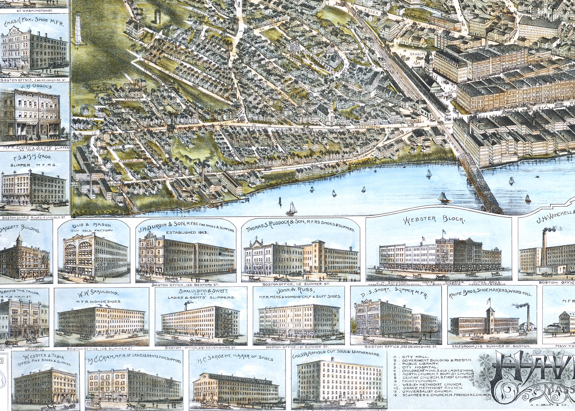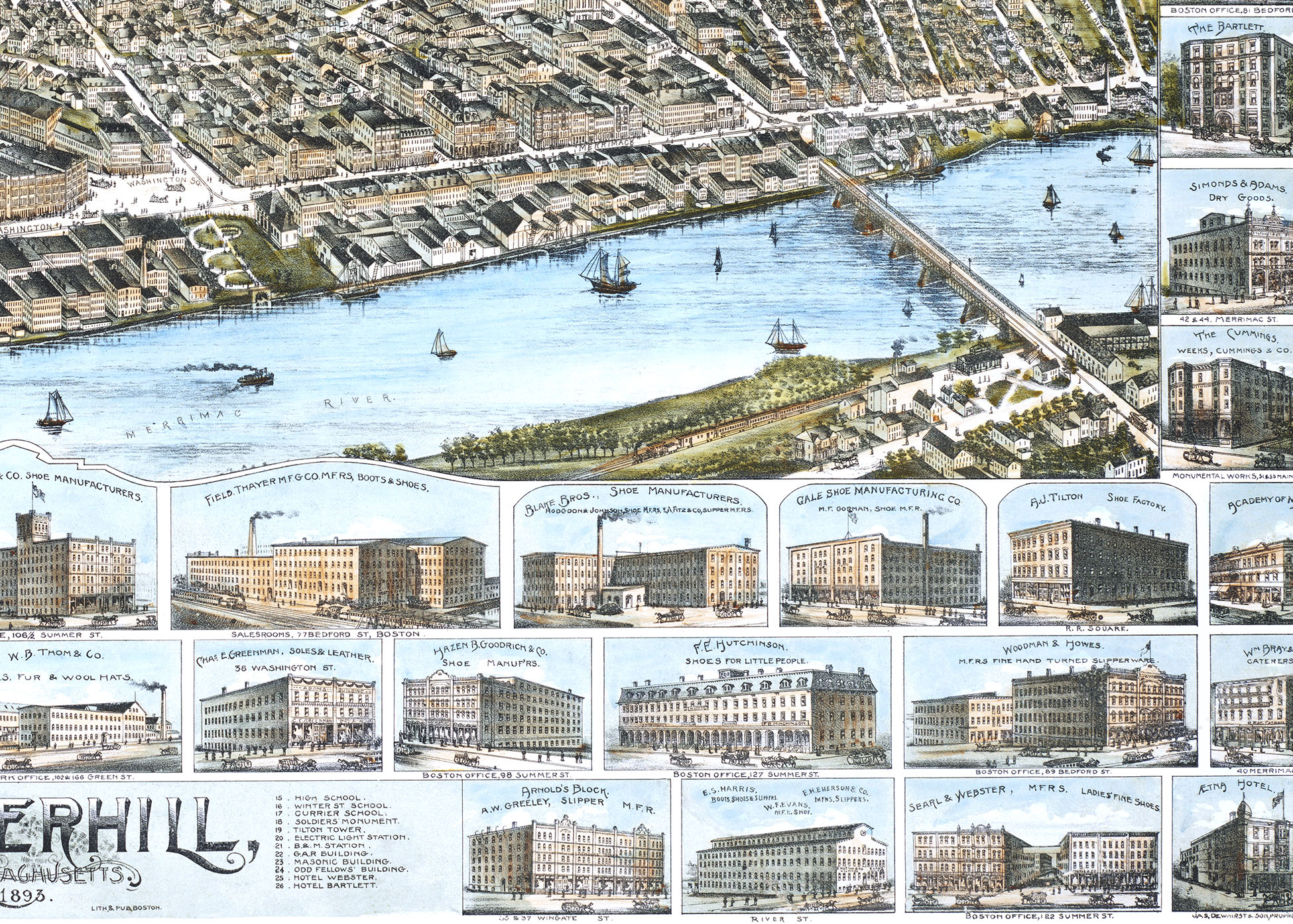 Haverhill, Massachusetts in 1893 - Bird's Eye View Map, Aerial Map, Panorama Map, Vintage Map, Antique Map, Reproduction, Giclée, Fine Art
