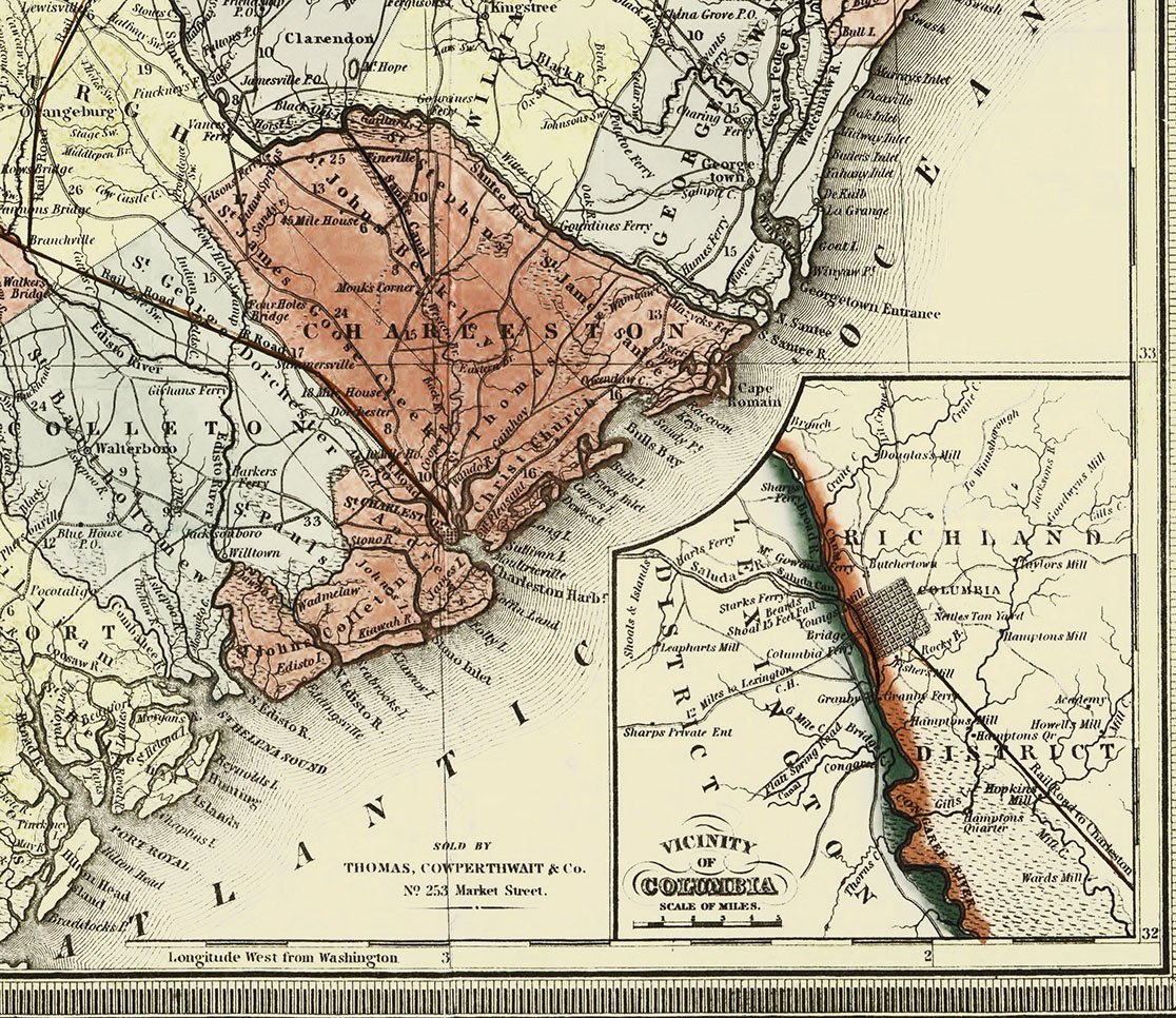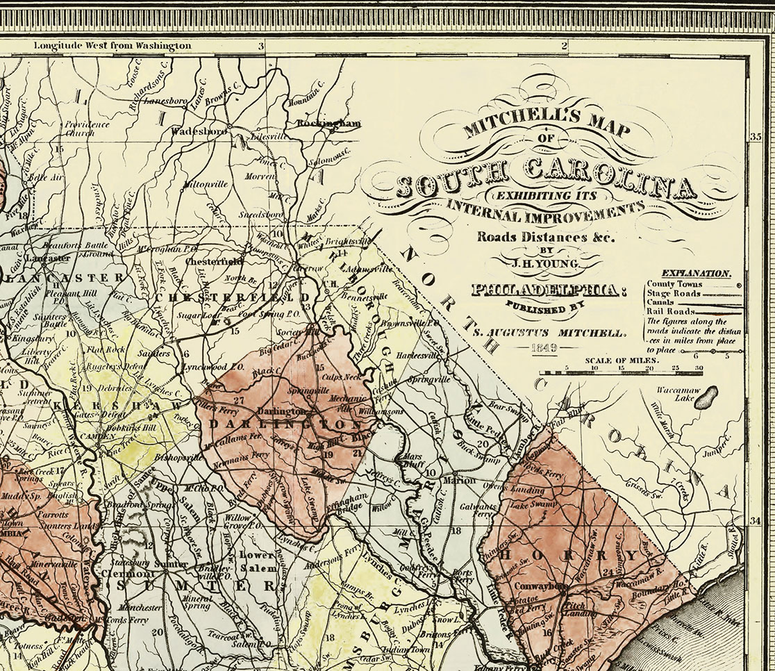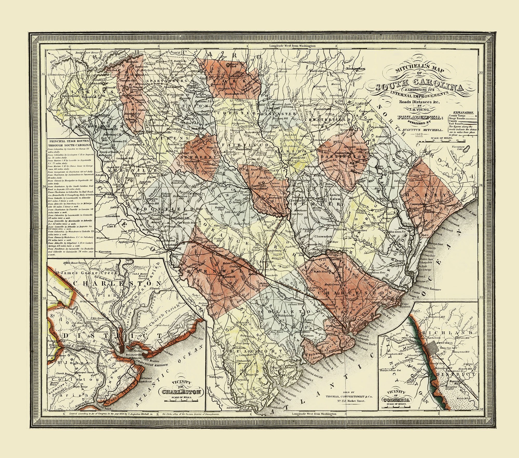 Mitchell's South Carolina in 1849 - State Map, Restoration, Vintage, Antique, Fine Art, Wall Art, History