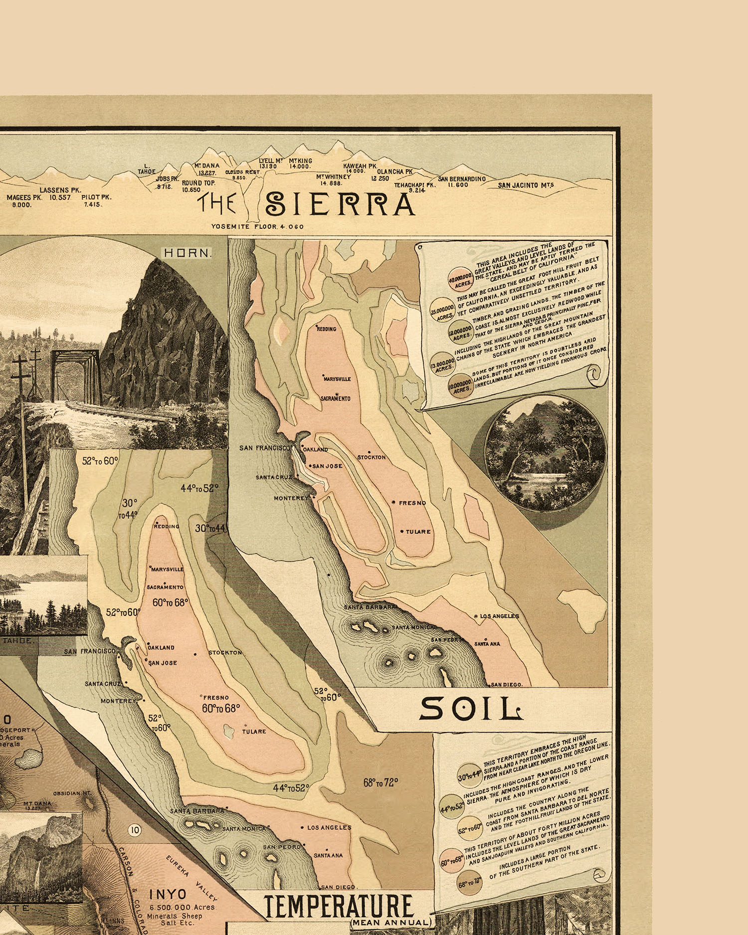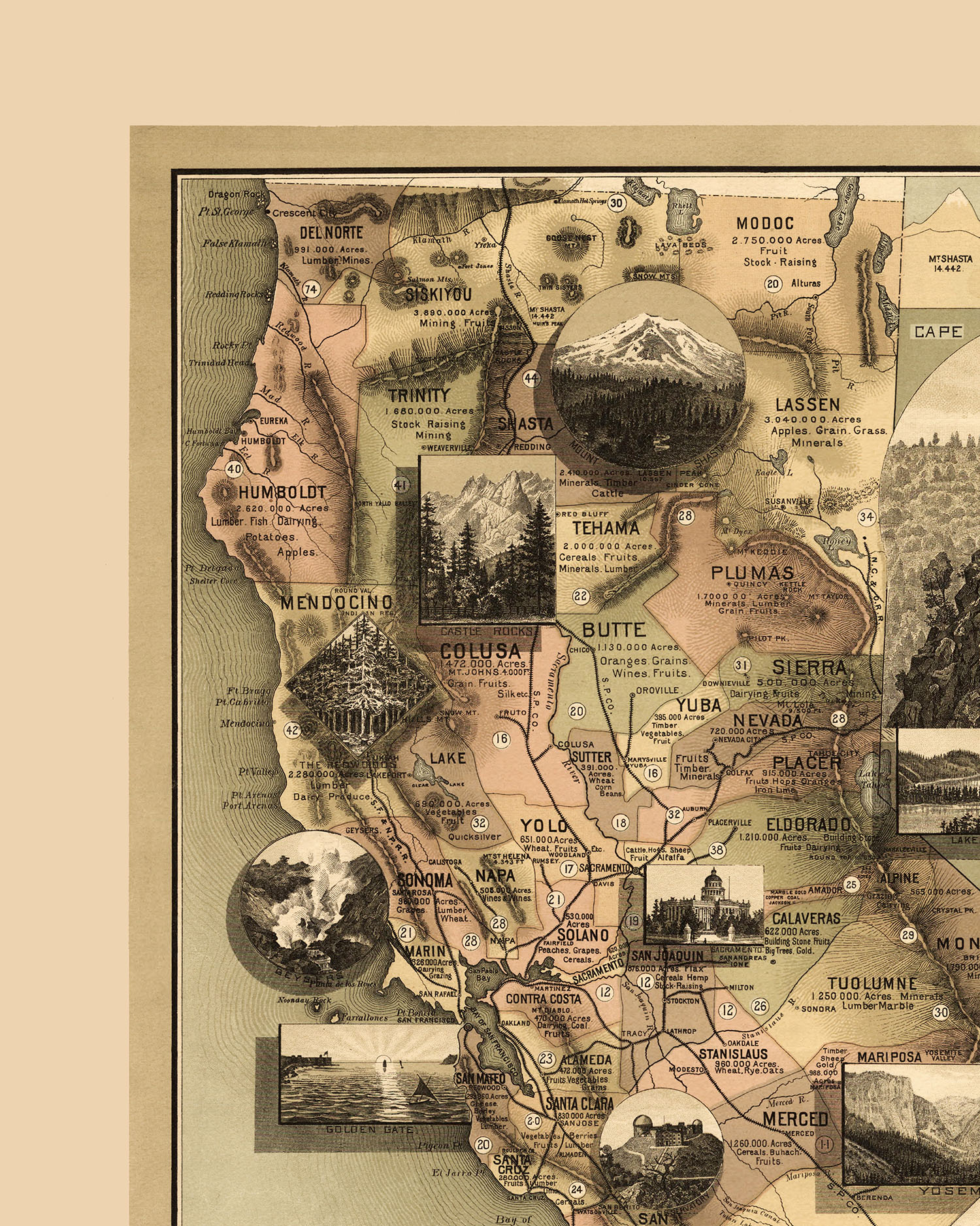 The Unique Map of California 1888 - Vintage Map, Antique Map, Reproduction, Fine Art, Wall Art, California, Giclée, History, Infographic