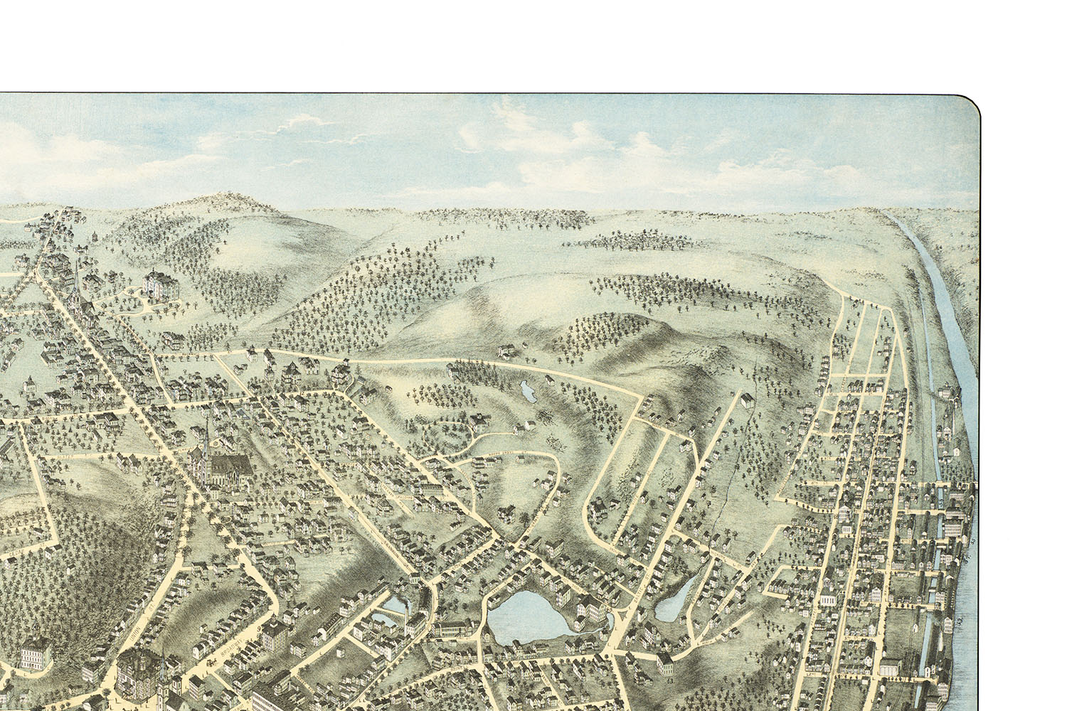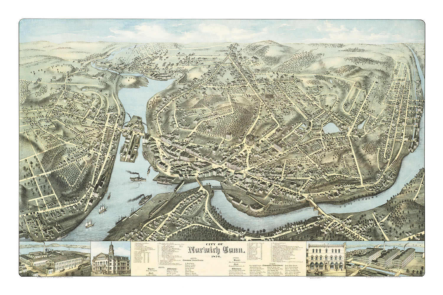 Norwich, Connecticut in 1876 - Bird's Eye View Map, Aerial, Panorama, Vintage, Antique, Giclée, Fine Art, Wall Art, History