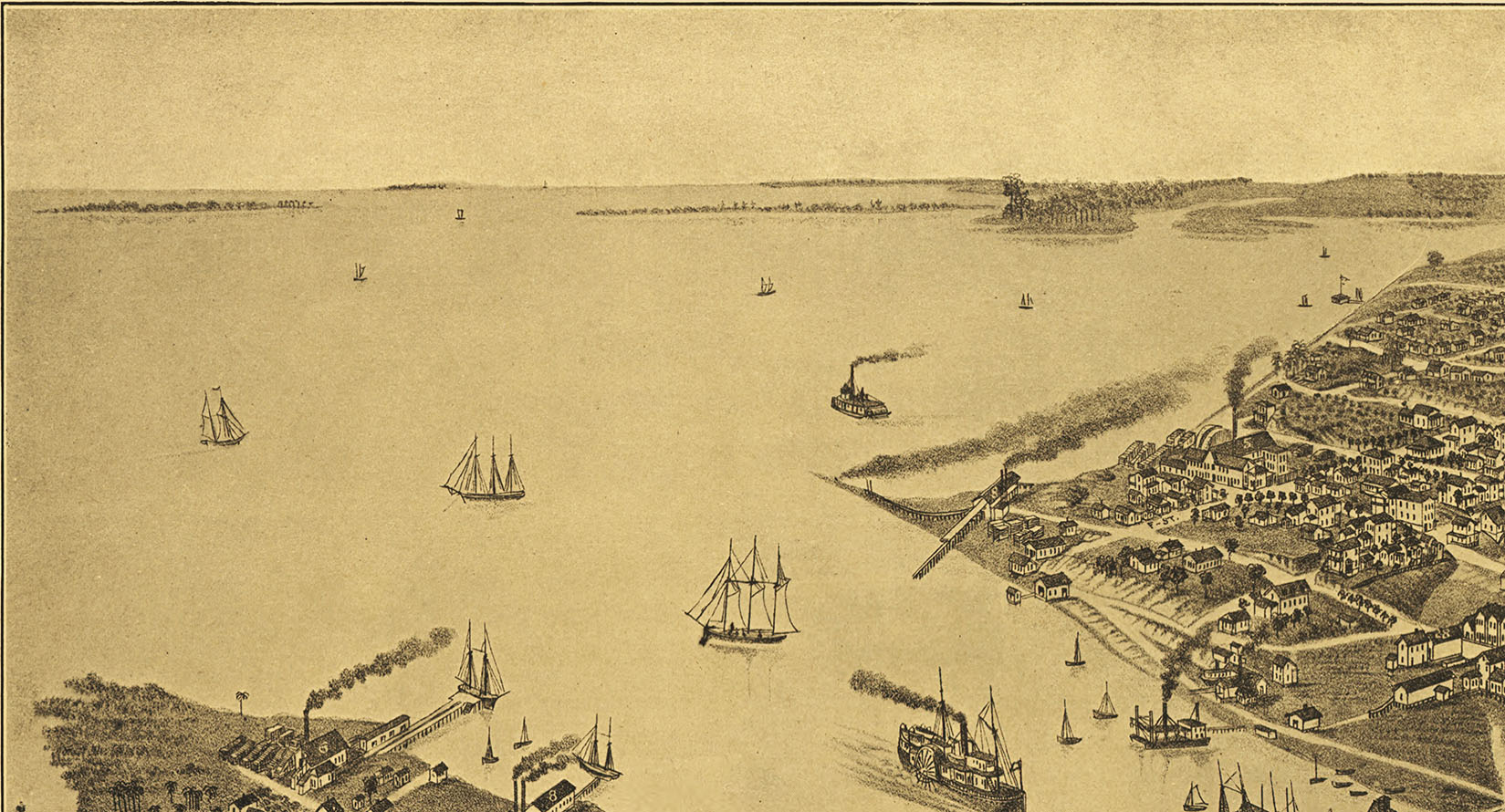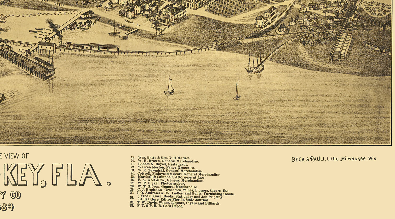 Cedar Key, Florida in 1884 - Bird's Eye View Map, Aerial Map, Panorama, Vintage, Antique, Reproduction, Giclée, Fine Art, Wall Art, History