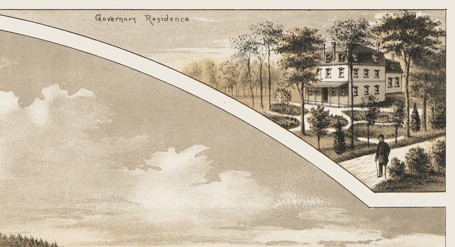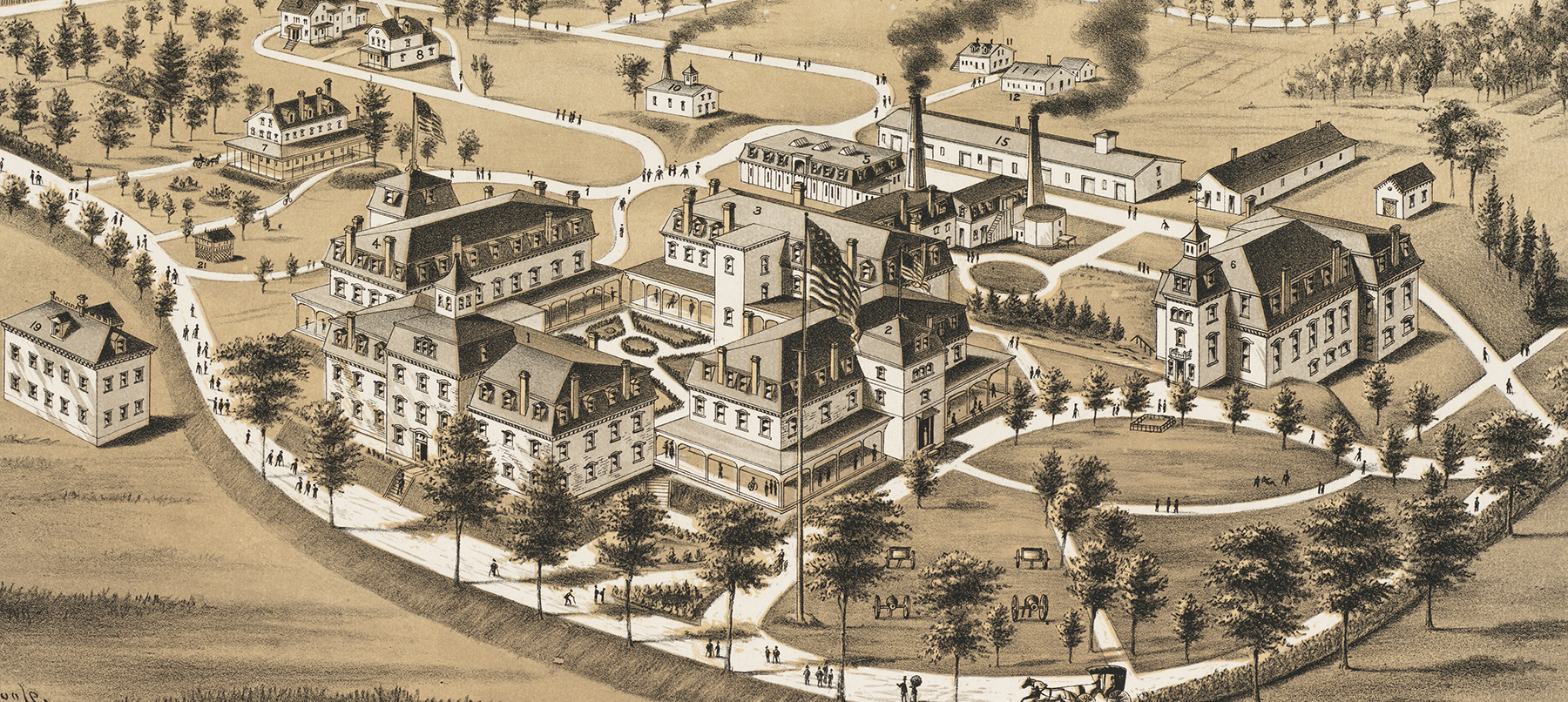 Sepia tone fine art reproduction of the National Home for Disabled Volunteer Soldiers, Togus, Maine in 1885.