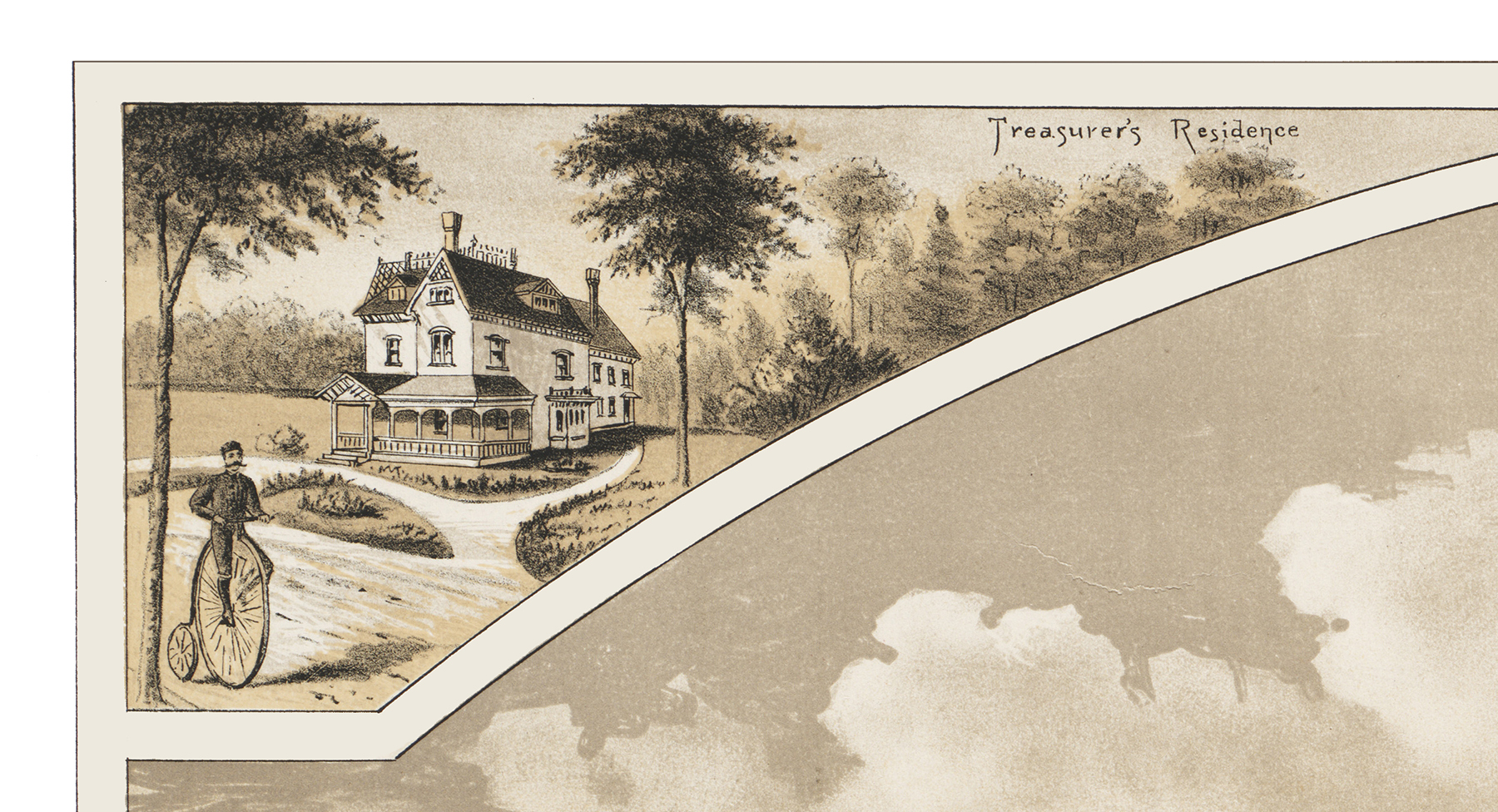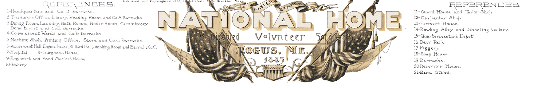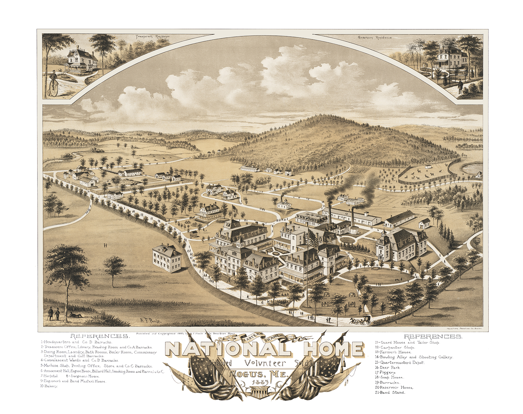National Home for Disabled Volunteer Soldiers, Togus, Maine in 1885 - Bird's Eye View Map, Panorama, Vintage, Reproduction, Giclée, Fine Art