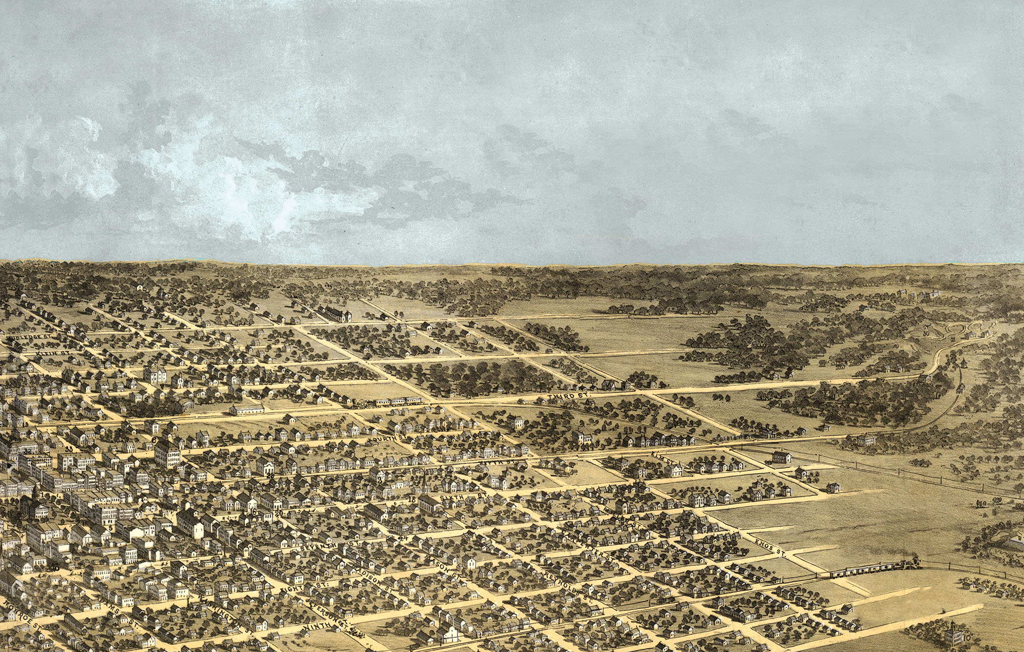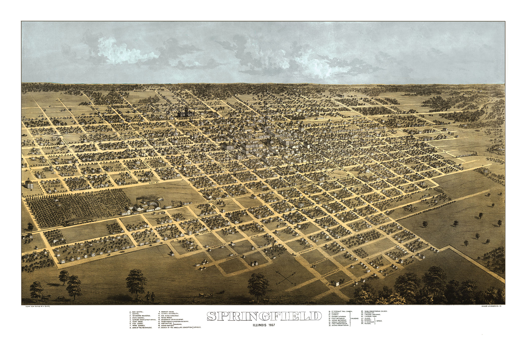 Springfield, Illinois in 1867 - Bird's Eye View, Aerial Map, Panorama, Vintage map, Antique map, Reproduction, Giclée, Fine Art, History
