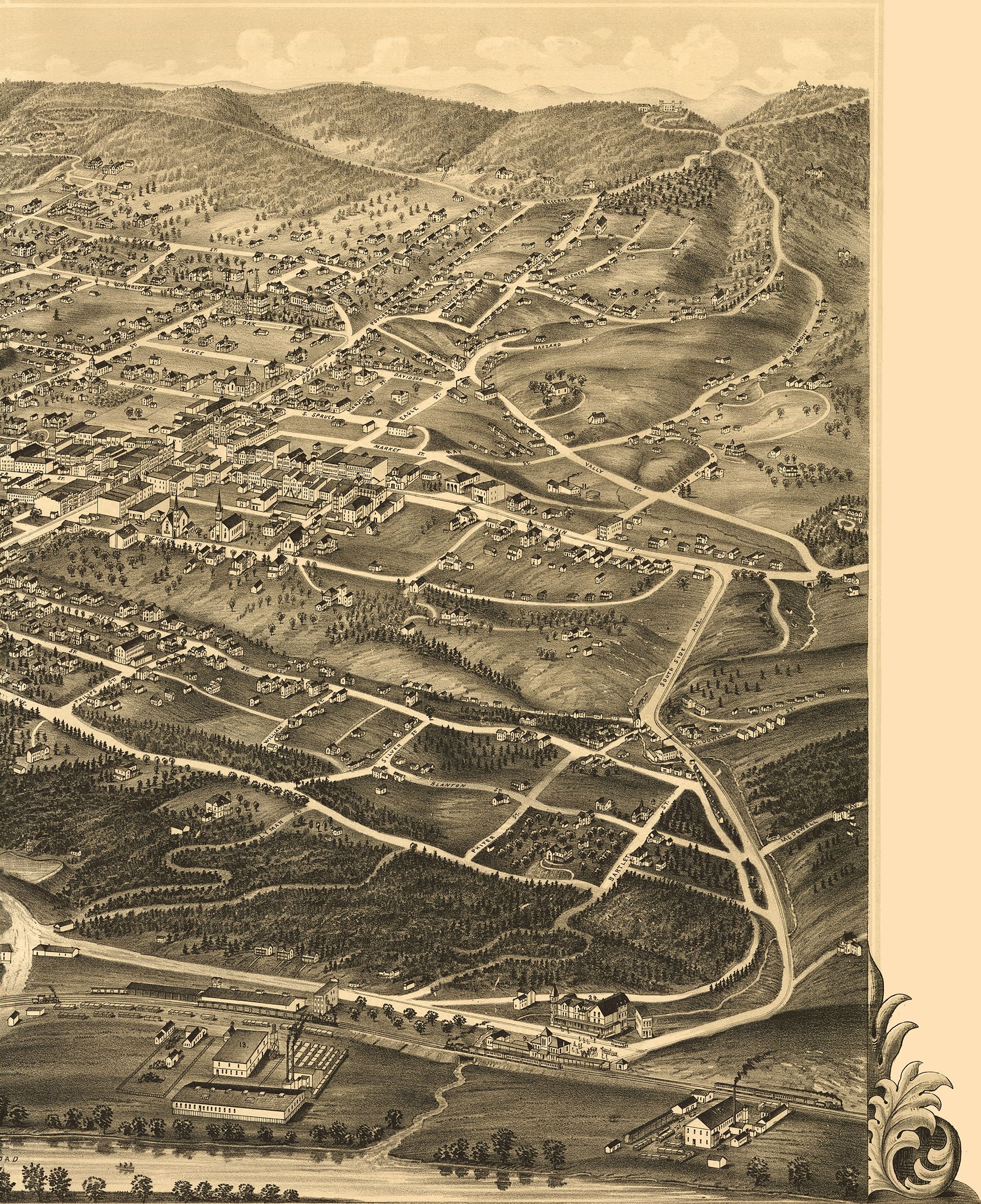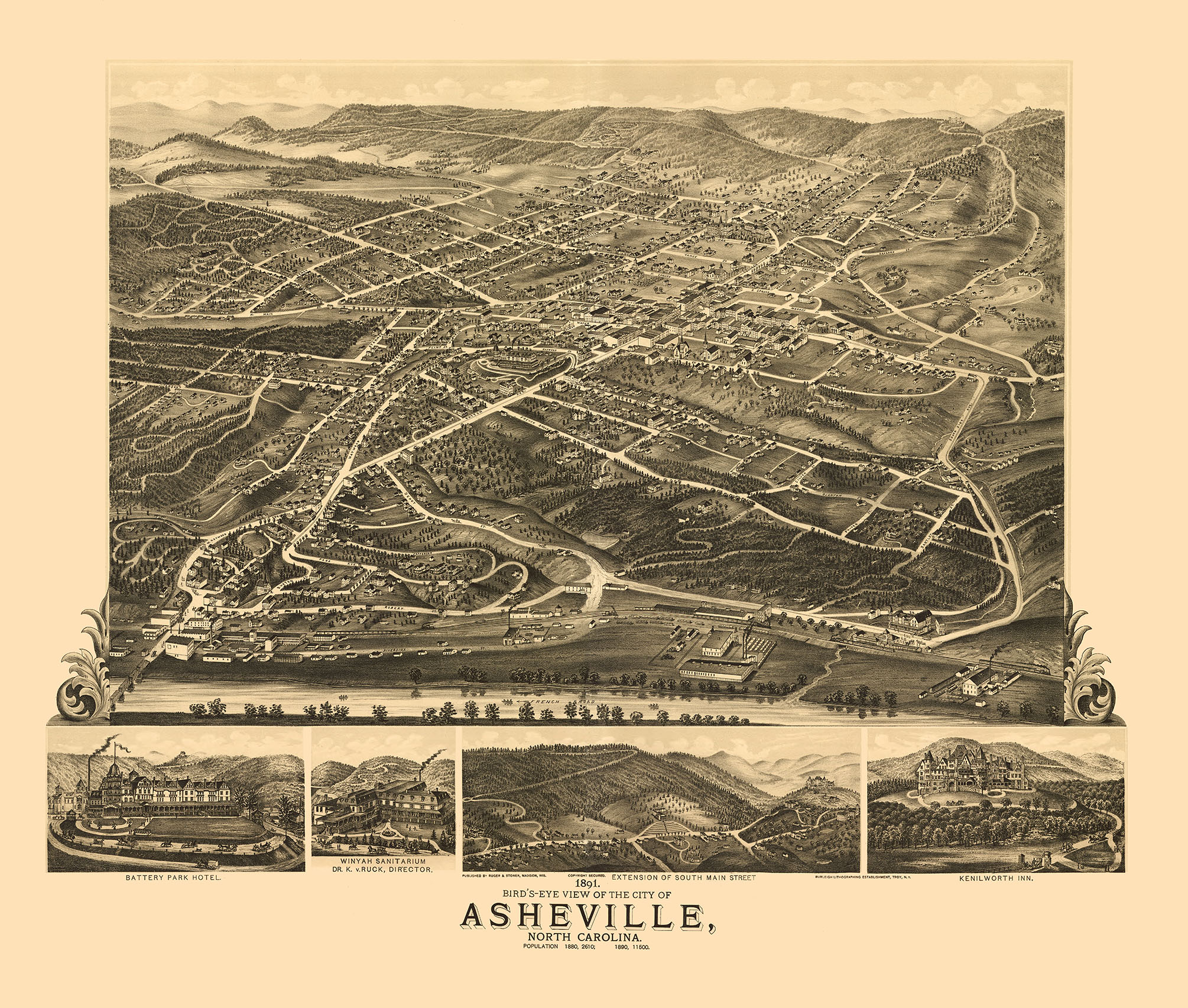 Asheville, North Carolina in 1891 - Bird's Eye View Map, Aerial, Panorama, Vintage, Antique, Giclée, History, Fine Art, Wall Art, Home Decor