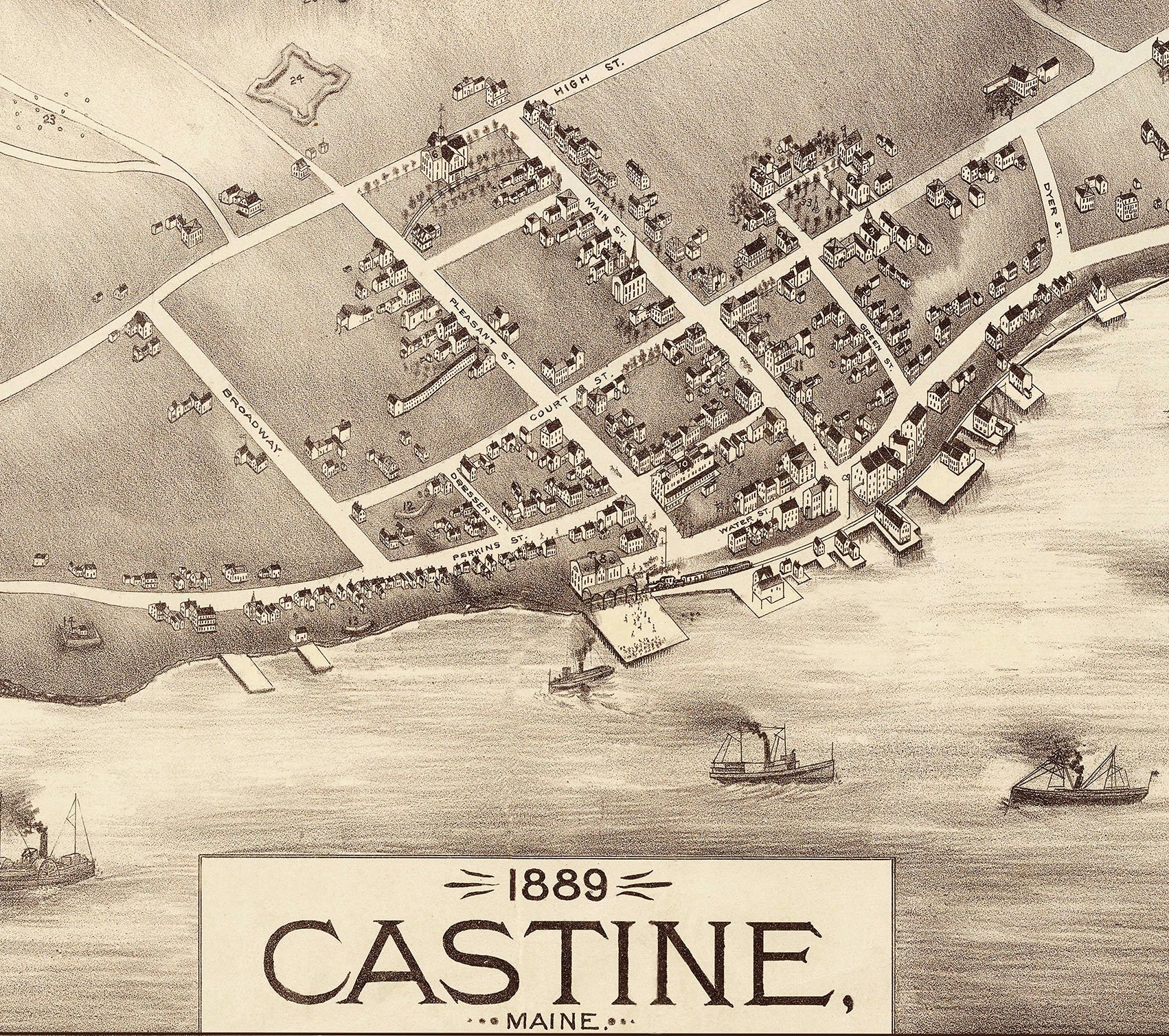 Castine, Maine in 1889 - Bird's Eye View Map, Aerial, Panorama, Vintage, Antique, Wall Map, Giclée, Framable, Fine Art, History